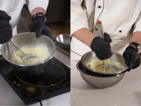 2.卡仕達(dá)醬分兩次加入,攪拌至無(wú)顆粒狀。